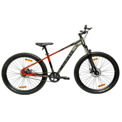Command every land and conquer every ride with the Hercules Geolander! This bike features a TIG-Welded Low Step Through Frame with IBR, a broader handlebar and Threadless CP Finish Suspension Fork, ensuring a comfortable and confident ride. A confident stopping power is provided by its dual disc brakes that comes with premium 2 finger alloy brake levers. Geolander also boasts a premium multi-cut semi-matt finish with waterdecals and rolls on durable double wall alloy rims.